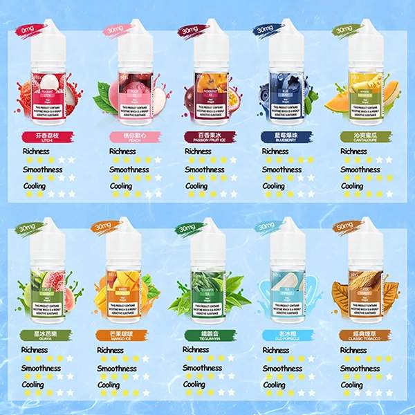 煙油成分:甘油、丙二醇、香精、有機尼古丁…